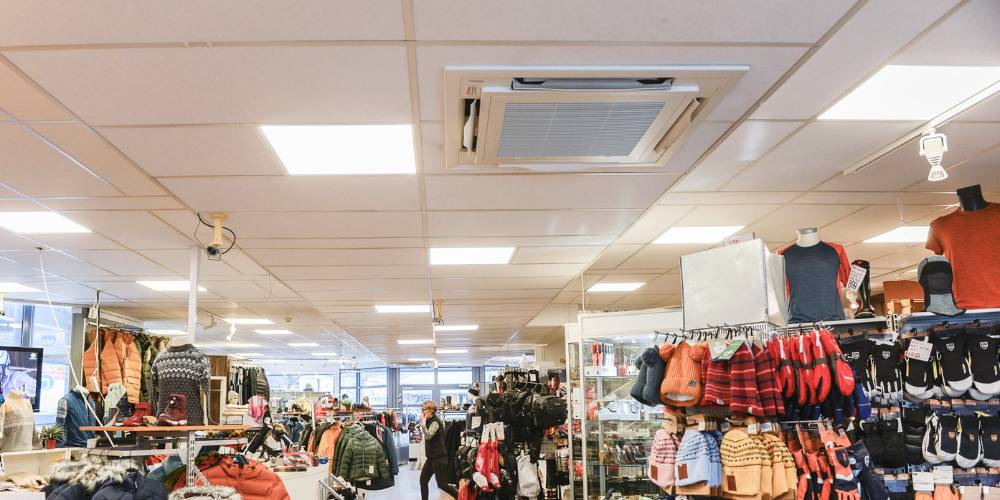 Sport1 Årnes har nesten 1 000 kvadratmeter totalt, fordelt på to etasjer butikk, og et lager i kjelleren. Nekas har installert luft-luft varmepumper på taket, og varmen fordeles via to takkassetter (innedeler) i hver butikketasje.